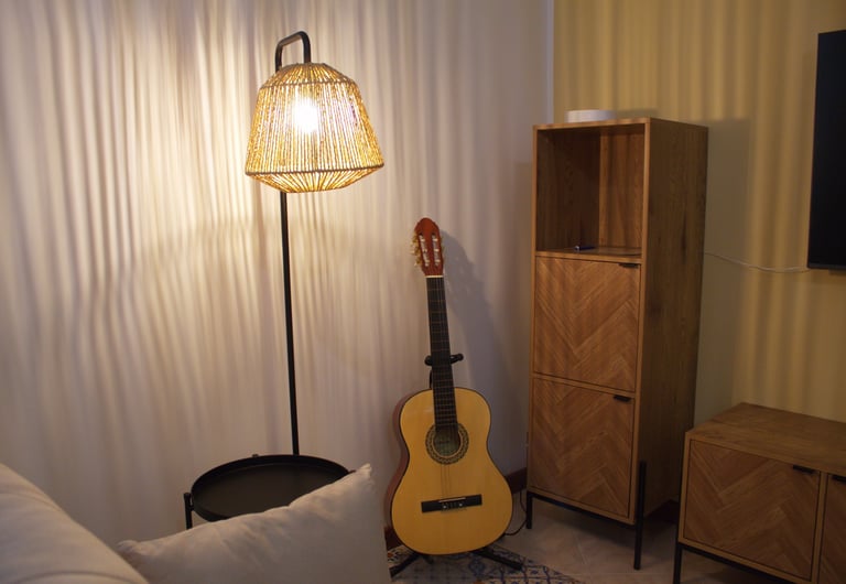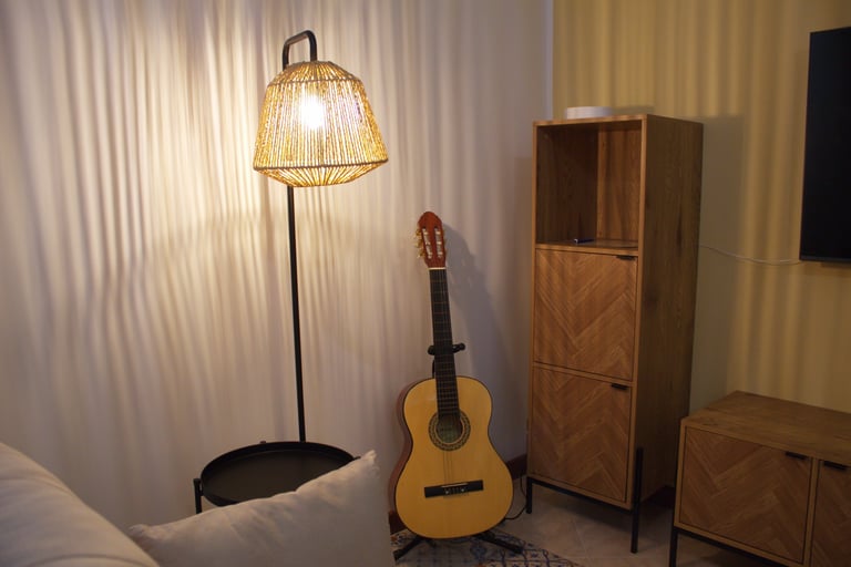 A guest guitar, walkable city life, and easy access to bike or scooter rentals.