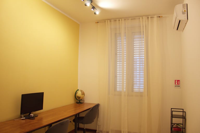 Dedicated office with three desks, ergonomic chairs, air conditioning, and high-speed Wi-Fi.